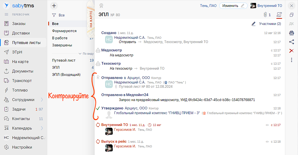 Отличные новости для всех, кто работает с ЭПЛ. В Saby (СБИС) вы можете взаимодействовать с ведущим игроком на рынке дистанционных медосмотров «Медпоинт24» и автоматизировать подтверждение допуска водителей к работе.