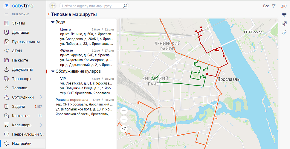 В настройках добавьте маршруты и укажите точки назначения любым удобным способом. Вы можете ввести адрес, выбрать контрагента, отметить точки на карте или импортировать их из уже созданных путевых листов.