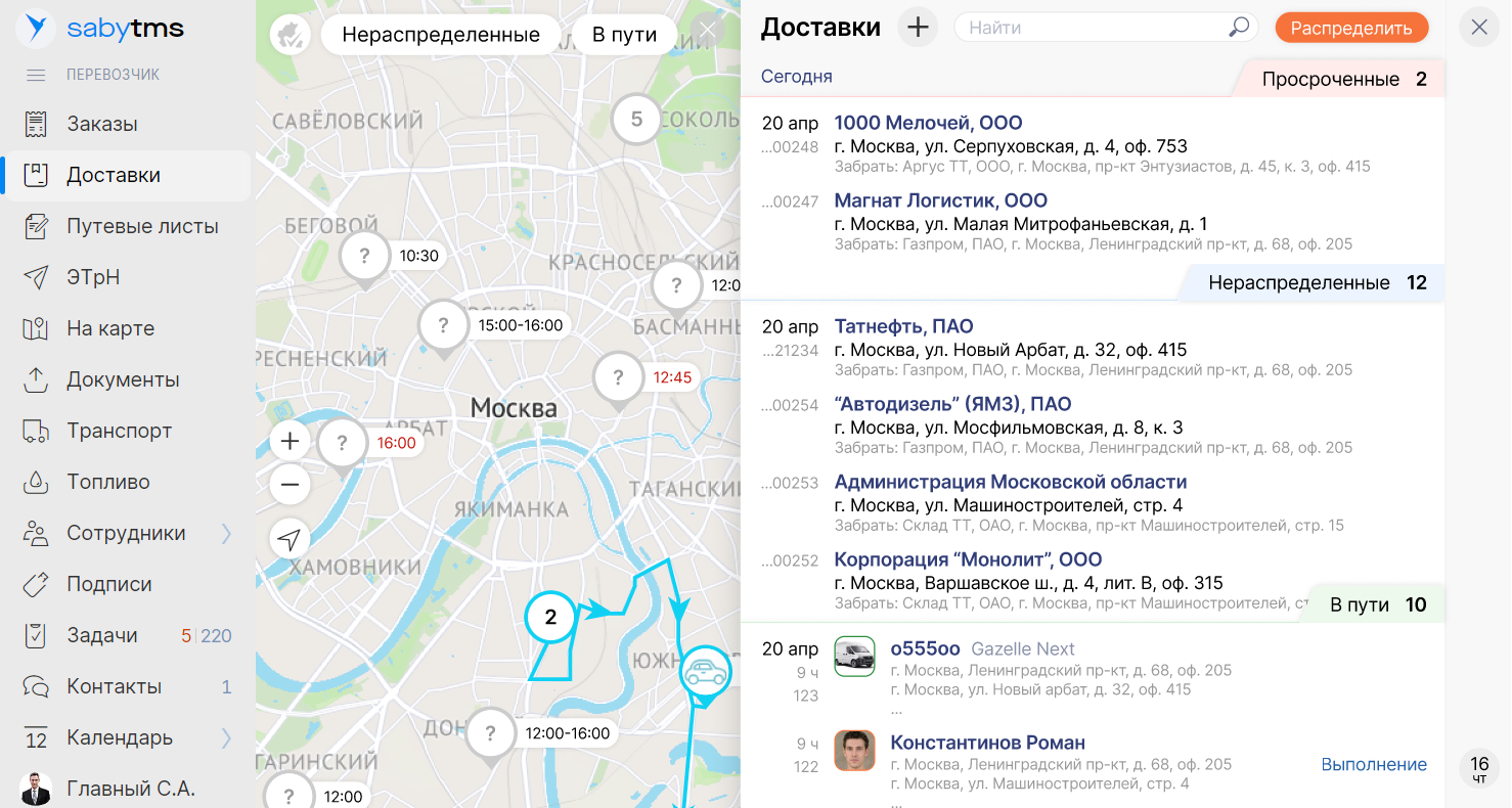 Устали от того, что одни машины простаивают, а другие перегружены? Срываются сроки доставок из-за путаницы с маршрутами? В Saby вы можете автоматически назначить нераспределенные доставки по машинам и создать на их основании путевые листы.