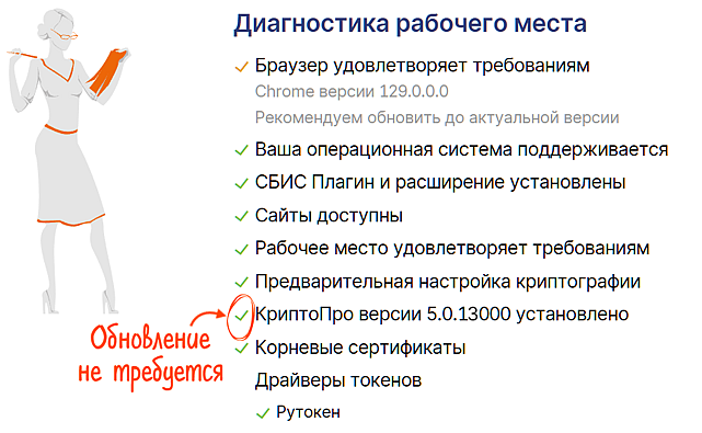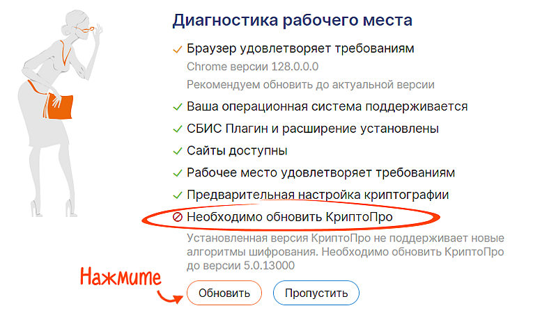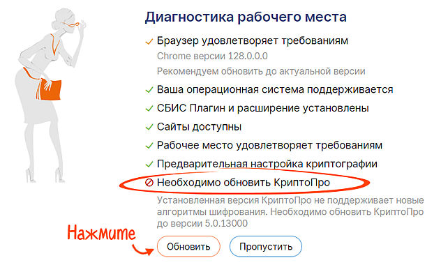 Если ваше средство криптографической защиты устарело, система сама предложит его обновить.