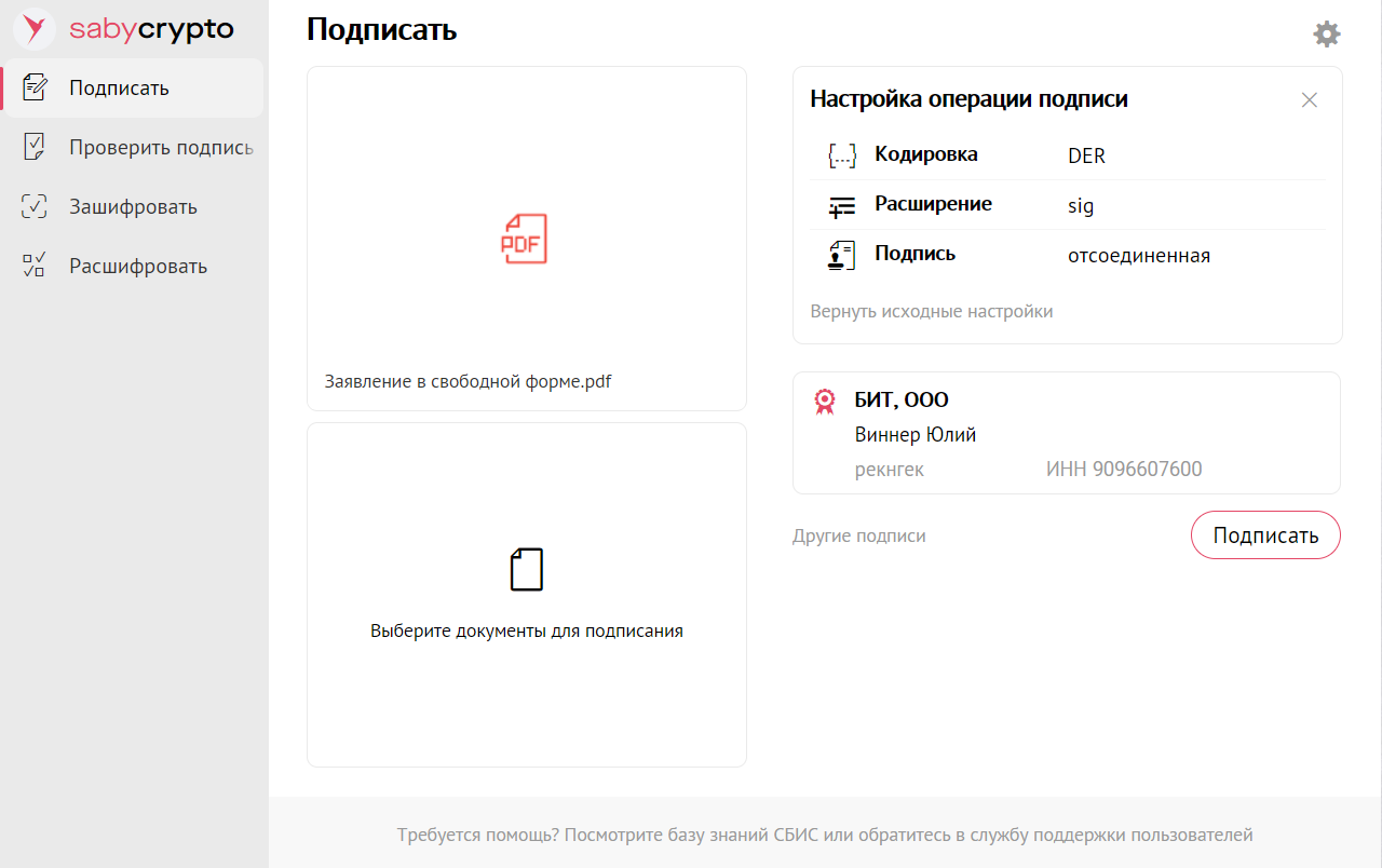 Для работы на госпорталах и электронных торговых площадках иногда нужно прикрепить документ с электронной подписью или зашифрованный файл. Раньше для этого требовалась сторонняя программа. Теперь пользователи СБИС могут воспользоваться новым приложением Saby Crypto.