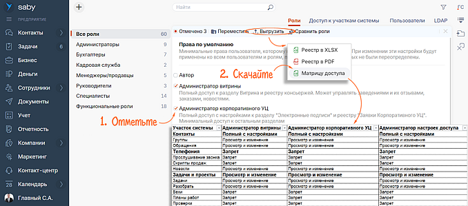 Нужен наглядный отчет для руководителя о настроенных правах? Или создали новую роль и хотите согласовать ее с ним? Просто выгрузите матрицу доступа в виде Excel-файла.